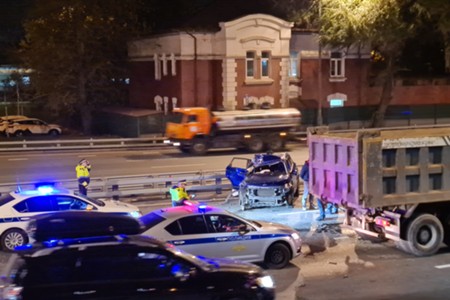 Последствия ДТП с участием самосвала и легкового автомобиля на ТТК