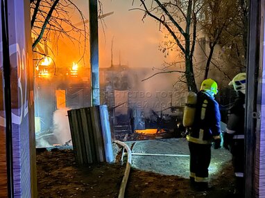 Пожарно-спасательные подразделения на месте возгорания деревянного дома в Серебряном бору