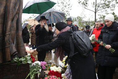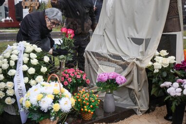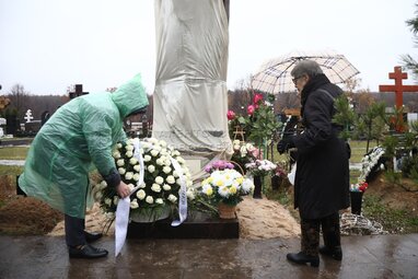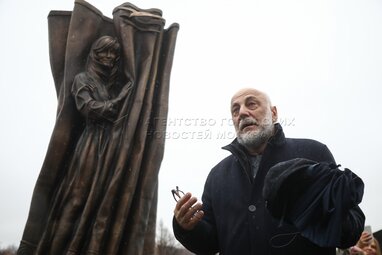 Скульптор Салават Щербаков на открытии памятника актрисе Ирине Мирошниченко на Троекуровском кладбище.