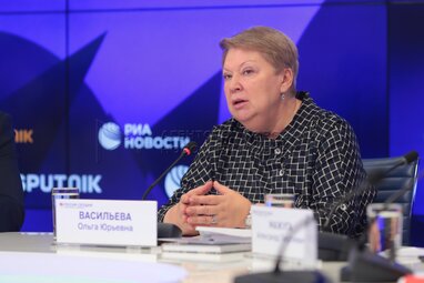 Президент РАО, академик РАО Ольга Васильева (слева). Торжественная церемония награждения лауреатов конкурса молодых ученых Российской академии образования (РАО) в Международном мультимедийном пресс-центре в Москве.