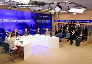 Торжественная церемония награждения лауреатов конкурса молодых ученых Российской академии образования (РАО) в Международном мультимедийном пресс-центре в Москве.