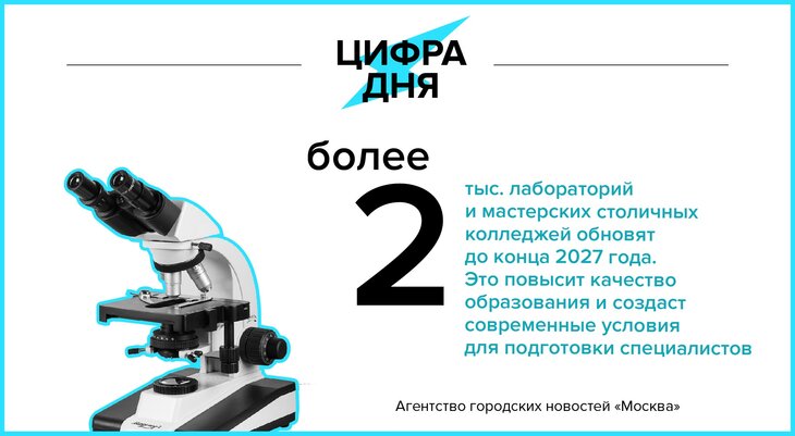 Цифра дня 9 ноября: Более 2 тыс. лабораторий и мастерских столичных колледжей обновят до конца 2027 года.