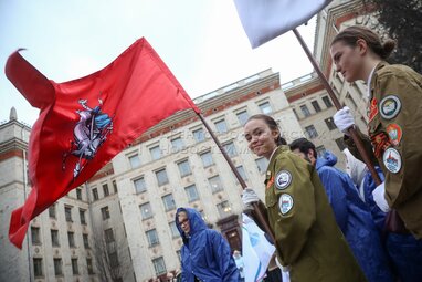 Церемония закладки у стен Московского государственного университета имени Ломоносова памятной плиты в честь 65-летия движения студенческих отрядов.