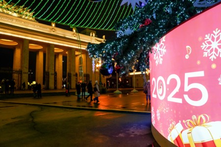 Новогодние арт-объекты в виде светящихся арок в центре Москвы