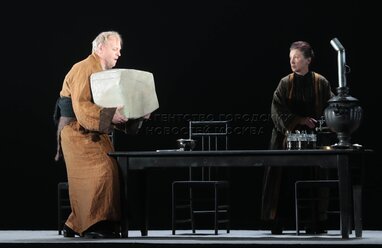 Актеры Сергей Юшкевич в роли Бессеменова (слева) и Сергей Гирин в роли Перчихина. Премьера обновленной версии спектакля «Мещане» в постановке Павла Сафонова в Московском театре «Современник».