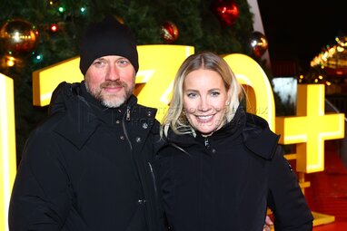 Телеведущая Елена Летучая с супругом Юрием Анашенковым на торжественном открытии ГУМ-катка на Красной площади.