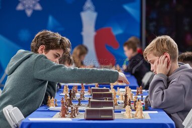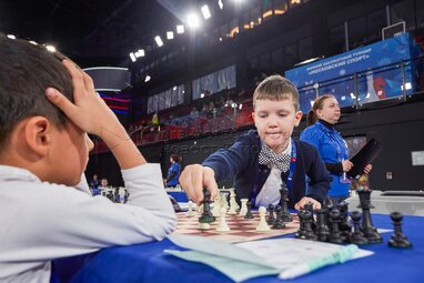 Юные шахматисты во время зимнего шахматного турнира «Московский спорт» во Дворце Ирины Винер.