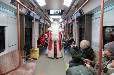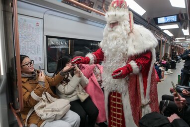 Поздравление пассажиров Московского метрополитена главным российским Дедом Морозом