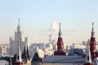 Купола соборов Московского Кремля. Виды центра Москвы.