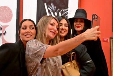Почетный член Российской академии художеств Евгения Васильева (вторая слева) и певица Алсу (справа) на открытии выставки Евгении Васильевой «Учитель» в музейно-выставочном комплексе Российской академии художеств (РАХ).
