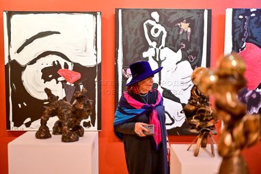 Коллекционер Лариса Леонтьефф на открытии выставки «Учитель» в музейно-выставочном комплексе Российской академии художеств (РАХ), созданной почетным членом Российской академии художеств Евгенией Васильевой (EVA).