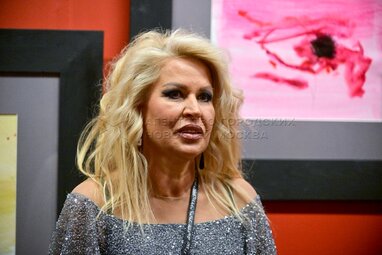 Почетный член Российской академии художеств Евгения Васильева (EVA) на открытии своей выставки «Учитель» в музейно-выставочном комплексе Российской академии художеств (РАХ).
