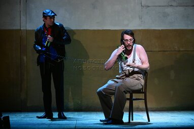 Актер Константин Любимов в роли Сергея Александровича (справа). Показ спектакля «Рыжий. Я всех любил. Без дураков» в Московском театре на Таганке.