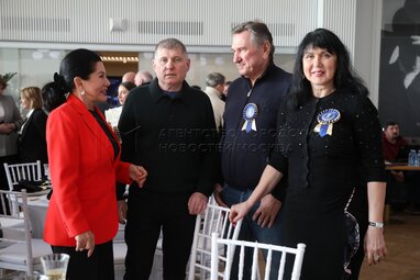 Президент Федерации конного спорта Московской области Евгений Вахрушев (второй справа). Церемония вручения III Национальной премии «Спортивное коневодство России» в Центре национальных конных традиций на ВДНХ.