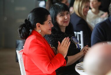 Председатель Комитета Федерации конного спорта России по спортивному коннозаводству Наталья Горская (слева) и первый заместитель министра сельского хозяйства РФ Елена Фастова. Церемония вручения III Национальной премии «Спортивное коневодство России» в Центре национальных конных традиций на ВДНХ.