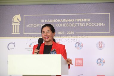 Председатель Комитета Федерации конного спорта России по спортивному коннозаводству Наталья Горская. Церемония вручения III Национальной премии «Спортивное коневодство России» в Центре национальных конных традиций на ВДНХ.