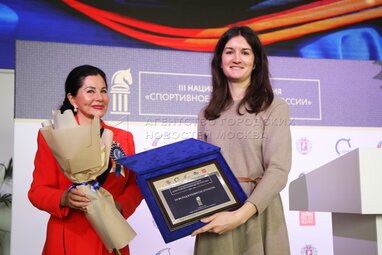 Президент Федерации конного спорта России Мария Сечина (слева). Церемония вручения III Национальной премии «Спортивное коневодство России» в Центре национальных конных традиций на ВДНХ.