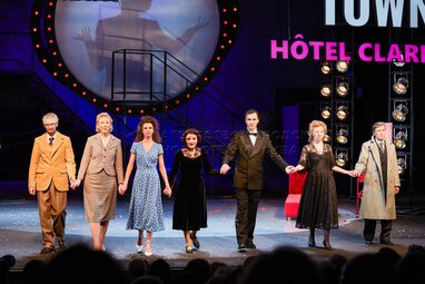 Актриса Ирина Зайцева в роли Эдит Пиаф (в центре). Показ спектакля «Эдит и Марсель. Больше, чем любовь» на «Прогресс Сцене Армена Джигарханяна Театра сатиры».