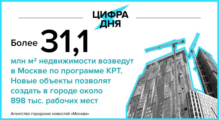 Цифра дня 19 февраля: Более 31,1 млн кв. м недвижимости возведут в Москве по программе КРТ.