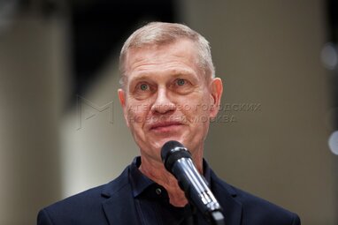 Председатель Союза журналистов Москвы, главный редактор газеты «Московский комсомолец» Павел Гусев. Предпоказ выставки «Выпуск. История. Академия Глазунова. Живопись, ваяние и зодчество. Две эпохи на Мясницкой» в парке «Зарядье».