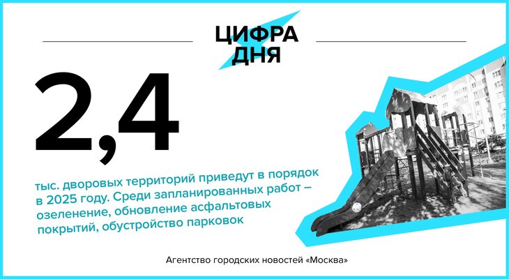 Цифра дня 27 февраля: 2,4 тыс. дворовых территорий приведут в порядок в 2025 году.