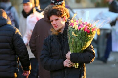 Продажа цветов на Рижском рынке в Международный женский день 8 марта.