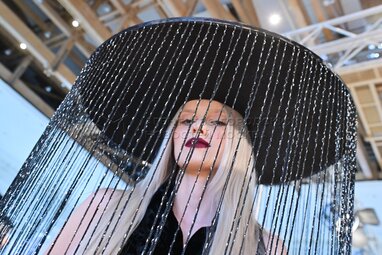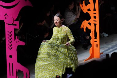 Дизайнер и основательница бренда CAPPAREL Оксана Сутягина (Екатеринбург). Открытие IV Московской недели моды в Центральном выставочном зале «Манеж».