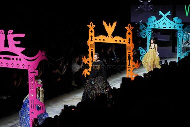 Показ бренда LOOM Weaving дизайнеров Инги и Элен Манукян (Армения). Открытие IV Московской недели моды в Центральном выставочном зале «Манеж».