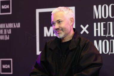 Стилист Александр Рогов на пресс-конференции в рамках проведения Московской недели моды в центральном выставочном зале «Манеж». Автор фото: Кирилл Журавок.