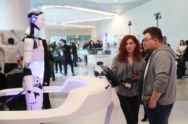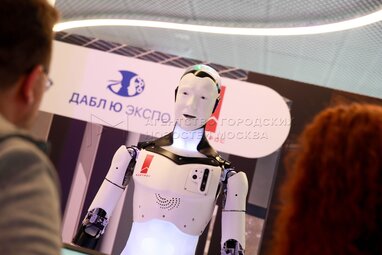 Робот «Арди», созданный компанией «Дабл Ю Экспо» на основе робототехнической платформы Robo‑C от компании «Промобот». Форум технологической инфраструктуры Москвы в кластере «Ломоносов».
