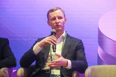 Директор по развитию промышленных территорий ГК MR Group Юрий Мельгунов во время панельной дискуссии «Создание технопарков в зонах КРТ. Потенциал применения механизма» в рамках Форума технологической инфраструктуры Москвы в кластере «Ломоносов».