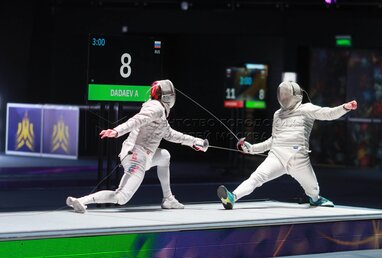 Финалы международных соревнований по фехтованию «Московская сабля» (командное первенство. мужчины) во Дворце гимнастики Ирины Винер.