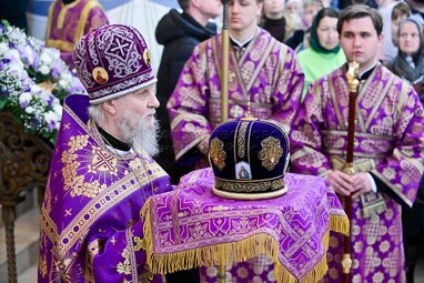 Святейший патриарх Московский и всея Руси Кирилл совершил чин великого освящения и божественную литургию в храме священномученика Ермогена в Зюзино.