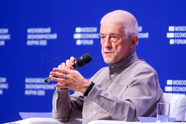 Председатель научного совета РАН Сергей Глазьев во время пленарной дискуссии «Новая индустриализация и умножение народа». Открытие Московского экономического форума 2025 в Цифровом деловом пространстве.