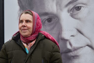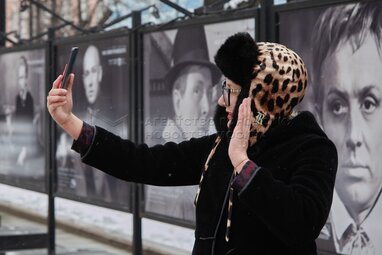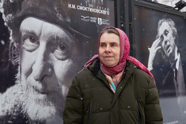 Дочь Иннокентия Смоктуновского, специалист архивного отдела музея МХАТ Мария Смоктуновская. Фотовыставка на Страстном бульваре, посвященная 100-летию со дня рождения народного артиста СССР Иннокентия Смоктуновского.