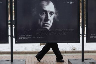 Фотовыставка на Страстном бульваре, посвященная 100-летию со дня рождения народного артиста СССР Иннокентия Смоктуновского.