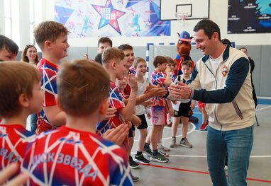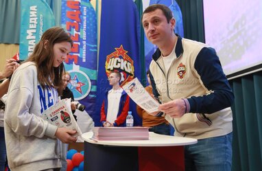 Футболист Алан Дзагоев на фестивале спорта и открытии школьного музея ПФК ЦСКА школы №1474 в районе Ховрино.