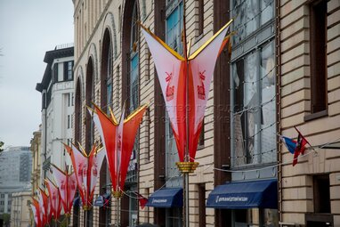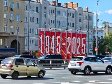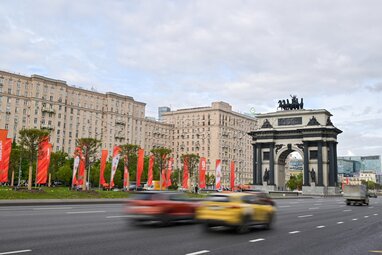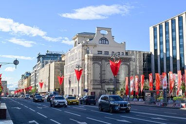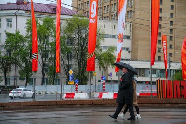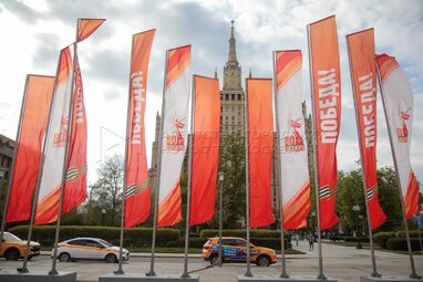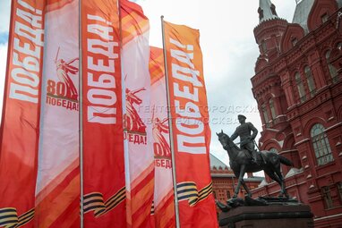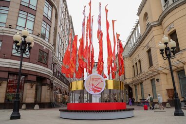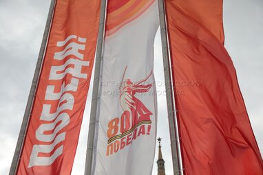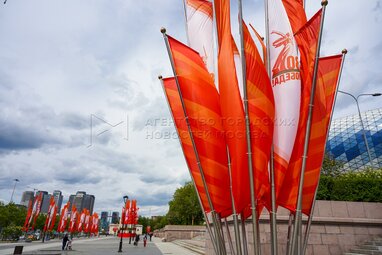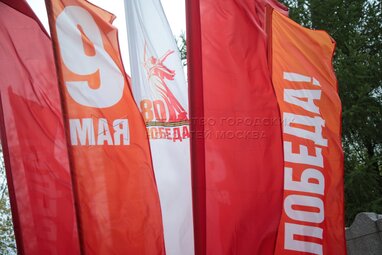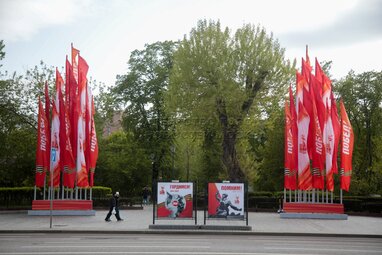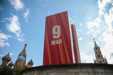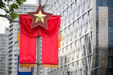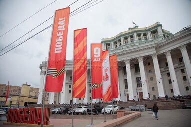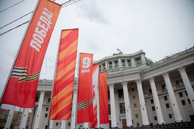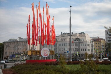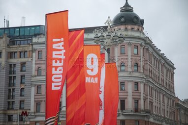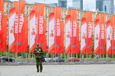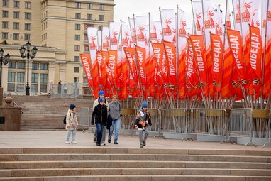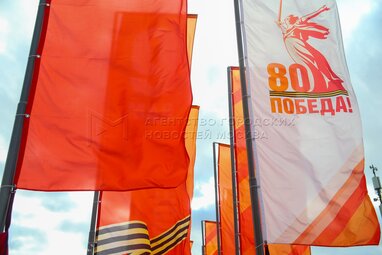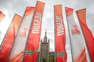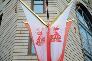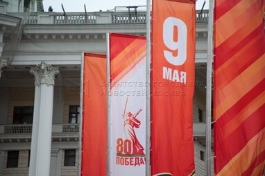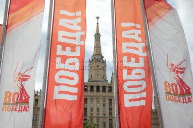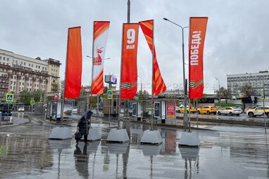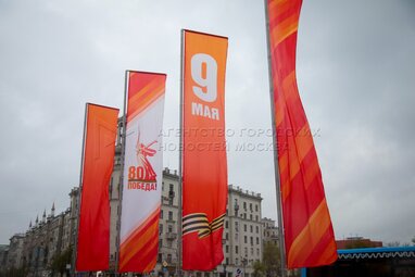 Флаги-виндеры. Оформление Москвы ко Дню Победы.