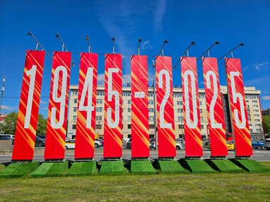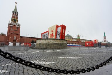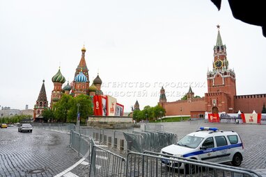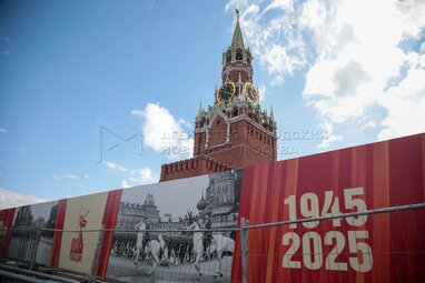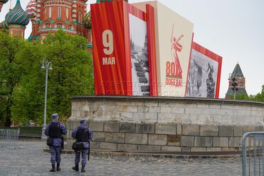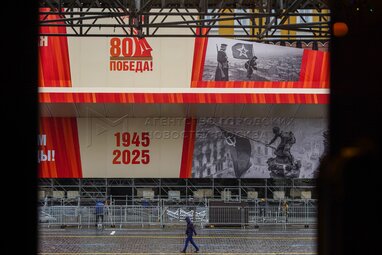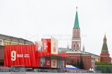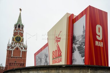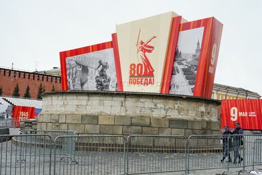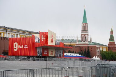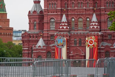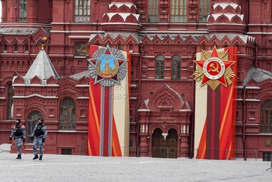 Украшение ко Дню Победы на здании Государственного исторического музея (ГИМ). Оформление Москвы ко Дню Победы.