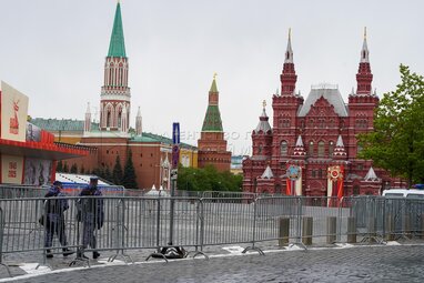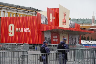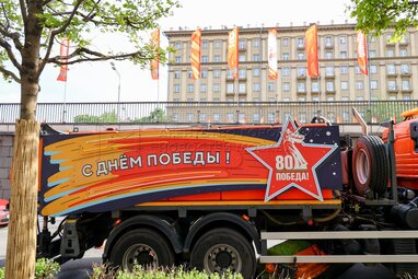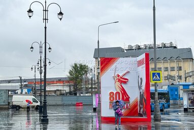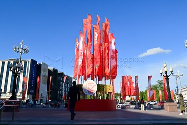 Оформление площади перед Театром Российской армии ко Дню Победы.