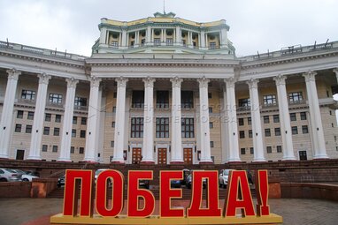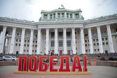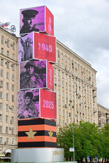 Инсталляция «Победа!» на Театральной площади у памятника Карлу Марксу. Оформление Москвы ко Дню Победы.