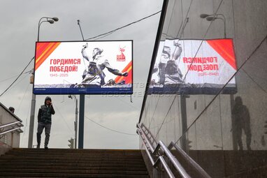 Баннер на станции метро «Генерала Тюленева». Оформление Москвы ко Дню Победы.