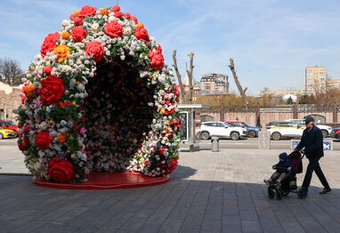 Пасхальный арт-объект на площади около станции метро «Краснопресненская»