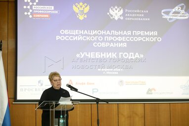 Сопредседатель Общенациональной премии «Учебник года» – президент Российской академии образования Ольга Васильева. Церемония награждения победителей общенациональной премии и одноименного конкурса Российского профессорского собрания «Учебник года» в Российской академии образования.