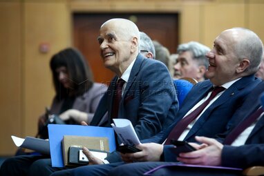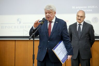 Сопредседателm Общенациональной премии «Учебник года» – председатель РПС, заместитель секретаря Общественной палаты РФ, заслуженный юрист РФ, академик РАО Владислав Гриб (слева). Церемония награждения победителей общенациональной премии и одноименного конкурса Российского профессорского собрания «Учебник года» в Российской академии образования.