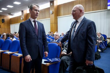 Президент Российского университета дружбы народов (РУДН) Владимир Филиппов (слева) и ректор Московского инженерно-физического института (МИФИ) Михаил Стриханов. Церемония награждения победителей общенациональной премии и одноименного конкурса Российского профессорского собрания «Учебник года» в Российской академии образования.