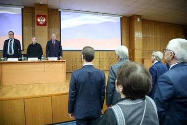 Ректор Московского государственного института международных отношений (МГИМО) Анатолий Торкунов (слева по центру). Церемония награждения победителей общенациональной премии и одноименного конкурса Российского профессорского собрания «Учебник года» в Российской академии образования.