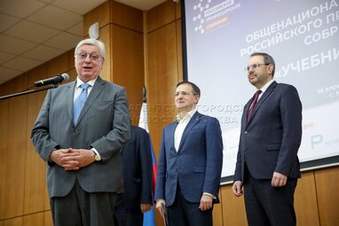 Председатель комитета Государственной Думы Федерального Собрания РФ по науке и высшему образованию Сергей Кабышев. Церемония награждения победителей общенациональной премии и одноименного конкурса Российского профессорского собрания «Учебник года» в Российской академии образования.