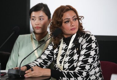 Член жюри основного конкурса ММКФ, актриса, певица, телеведущая, продюсер Бушра (Египет, Великобритания). Пресс-конференция жюри основного конкурса 47-го Московского международного кинофестиваля (ММКФ-2025) в кинотеатре «Октябрь».