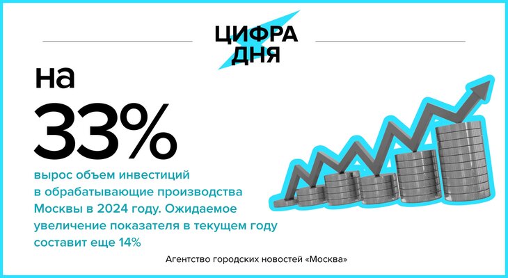 Цифра дня 22 апреля: На 33% вырос объем инвестиций в обрабатывающие производства Москвы в 2024 году.